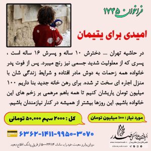 🦋 #فراخوان ۱۷۴۵💟 رهن خانه برای خانواده ایتام حاشیه تهران❤️ کل مبلغ فراخوان : ۱۰۰ میلیون تومان✍ با قلب های مهربان شما، محبت ها از