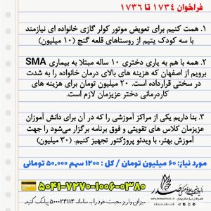 |بسم‌الله الرحمن الرحیم| #فراخوان ۱۷۳۴ تا ۱۷۳۶  ۲۴ مهر ۱۴۰۴ برای دو خانواده نیازمند و آموزش بچه ها… با انتشا…