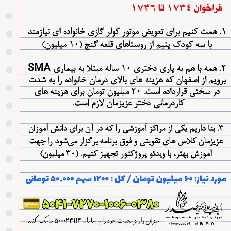 #بسمالله #الرحمن #الرحیم #فراخوان #۱۷۳۴ #تا #۱۷۳۶ #۲۴ #مهر #۱۴۰۴ #برای #دو #خانواده #نیازمند #آموزش #بچه #ها.. #با #انتشا..