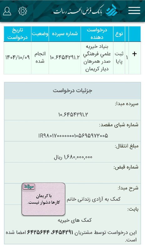#فراخوان #۱۷۵۳ #کمک #به #آزادی #یک #مادر #سرپرست #خانوار #از #زندان #کامل #شد #همه #مبلغ #تامین #واریز #مادر #آزاد #شد #ک..