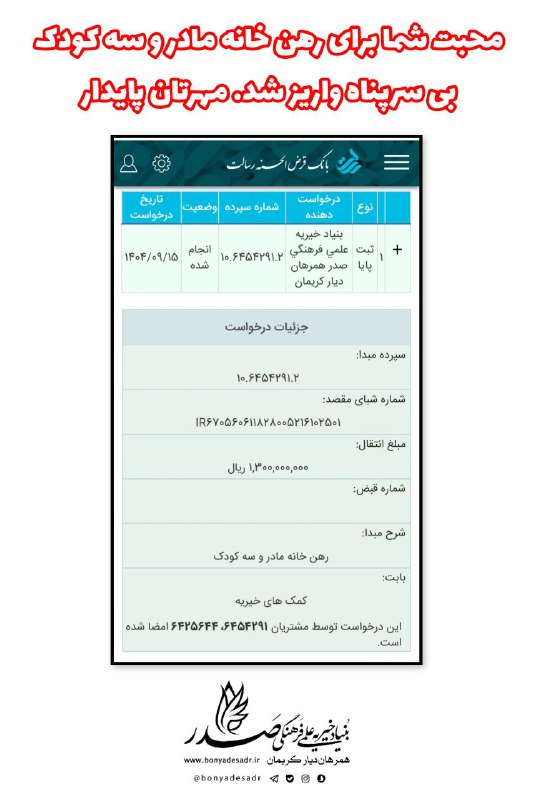 محبت شما برای کمک به این خانواده واریز شد. @BonyadeSadr…