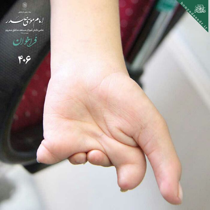 گزارش اولیه فراخوان 406 بنیاد امام موسی صدر : ساخت پروتز برای دست یک دختر یتیم… کل : 450 سهم 10.000 تومانی …