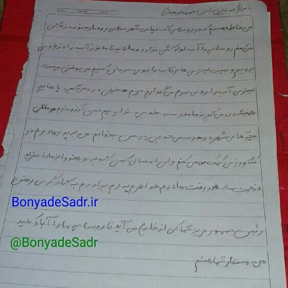 دل نوشته ساده یک دختر روستایی از جنوب کرمان برای رئیس جمهور. با بنیاد صدر همراه شویدhttps://telegram.me/joinc…