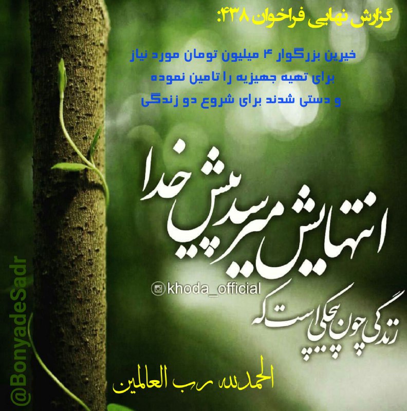 فراخوان 438 بنیاد صدر :با ارسال این فراخوان به سایر دوستان و آشنایان و گروه ها شما هم سهیم باشید. #همه_باهم_…