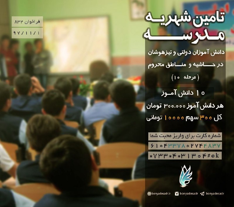 #فراخوان 832 تامین شهریه مدرسه بچه های نمونه و تیزهوشان حاشیه و مناطق محروم بچه های خوب اما نیازمند حمایت مال…