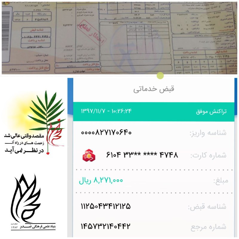 #گزارش_مالی_اجرایی 835به لطف خدا و محبت خوبان بدهی برق مهمانسرا پرداخت شد. الحمدلله رب العالمین @BonyadeSadr…