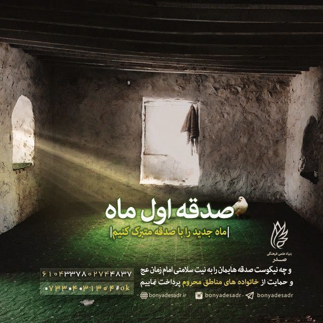 #پیام_بنیاد صدقه اول ماه امروز ، اول ماه جمادی الثانی و واریزی محبت شما به نیت صدقه اول ماه برای محرومین منا…