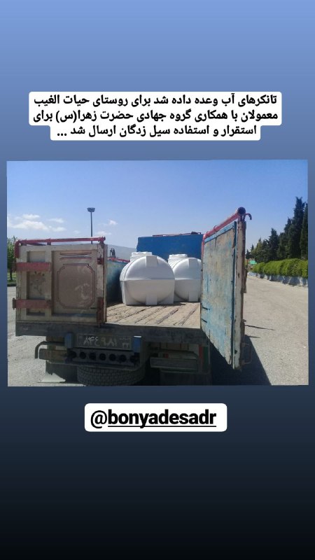 🦋 #گزارش_اجرایی ۸۶۰ ✍ انتقال دبه های آب به انباری در نزدیکی روستا برای توزیع 💟 @BonyadeSadr