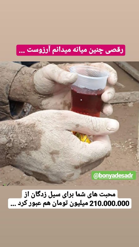 🦋 #اخبار_فراخوان ۸۶۰ 🌸 محبت بی پایان … 💌 مهربانی را منتشر کنید …. ✍ کمک ها همچنان برای سیل زدگان ادامه دارد … تا شروع فراخوان بعدی همه کمک ها برای سیل زدگان خواهد بود … 💳 ۶۱۰۴۳۳۷۸۰۲۷۴۴۸۳۷ 📲 *۷۳۳*۴*۳۱۳۰۴#ok 💟 @BonyadeSadr