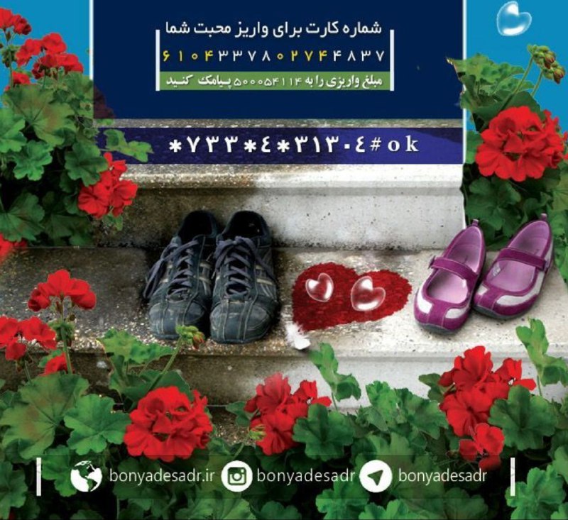 🦋 #فراخوان۸۶۴ 📆 ۳ اردیبهشت ۹۸ 💕 همه یک خانواده ایم … ✍ پدرش به دلیل ازکار افتادگی، قادر به تامین جهیزیه اش نیست، چند وقتی بیشتر به عروسی اش نمانده. همه باهم برایش سنگ تمام بگذاریم ❤️مورد نیاز: ۷۰۰سهم ۱۰٫۰۰۰ تومانی 💳 ۶۱۰۴۳۳۷۸۰۲۷۴۴۸۳۷ 📲 *۷۳۳*۴*۳۱۳۰۴#ok 💟 @BonyadeSadr