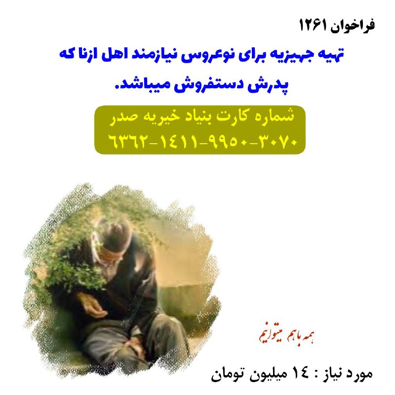 #اخبار_فراخوان ۱۲۶۱ با محبت همه خیرین بزرگوار، همه 14.000.000 تومان لازم برای فراخوان جهیزیه نوعروس نیازمند ت…