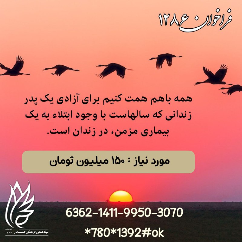 🦋 #فراخوان ۱۲۸۶📆 ۶ مرداد ۱۴۰۰🌸 امید آزادی✍ مدت هاست مادرش در زیر آفتاب گرم جنوب در سر راه رهگذران مینشید و سفارش آزادی فرزندش را میکند.پدر حدیث خانم و آیه کوچولو، بی هیچ سابقه ای، بخاطر حضور در یک نزاع دسته جمعی که متاسفانه فردی کشته میشود، محکوم میشود و حالا سالهاست که در […]