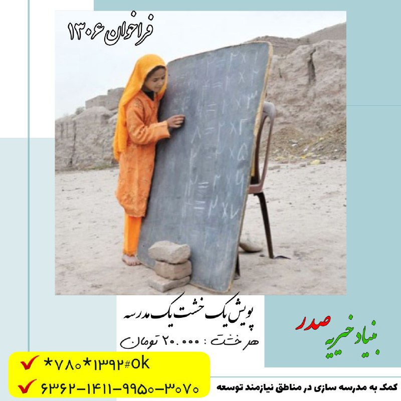 #فراخوان ۱۳۰۶ ۱ مهر ۱۴۰۰ پویش یک خشت، یک مدرسه پنج شنبه است و خیرات ما برای عزیزان آسمانی مان، خشت های مدرسه …