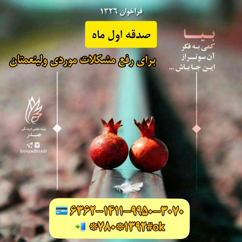 #فراخوان 1326 ۱۵ آذر ۱۴۰۰ صدقه اول ماه صدقه اول ماه را به نیت سلامتی امام زمان(ع) و همه مردم و عزیزانمان به و…