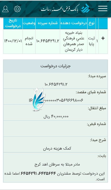 📆 ۱ اسفند ۱۴۰۰ به لطف خدا همه هزینه لازم برای کمک به درمان مادر نیازمند آبرومند تأمین و واریز شد. صلوات مورد نیاز : 4.000.000 تومان کل : 200 سهم 20.000 تومانی تأمین شده : 200 سهم 🕋 الحمدلله رب العالمین 🕋 BonyadeSadr@
