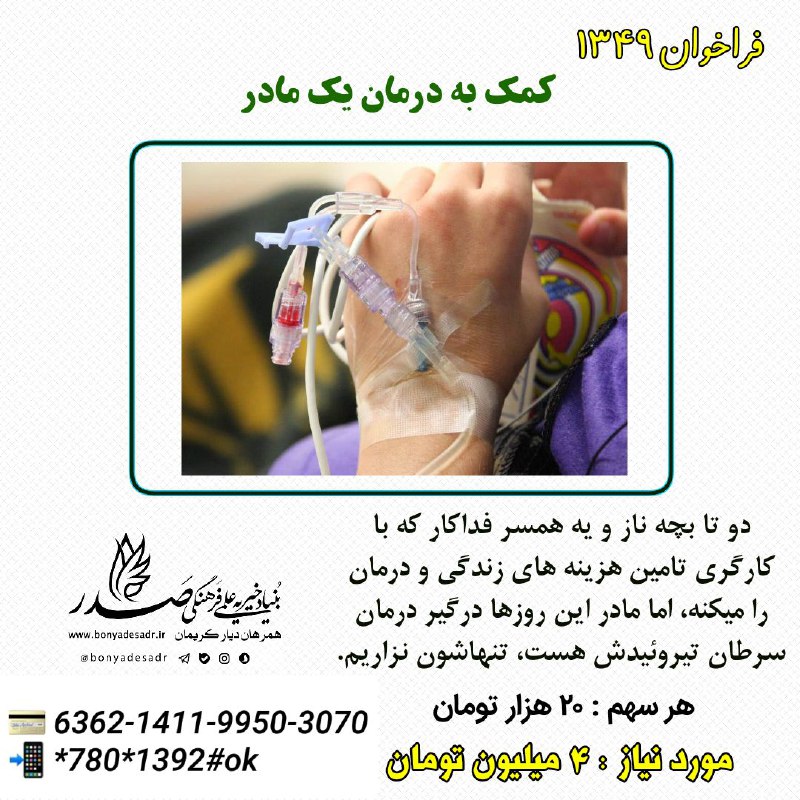 #فراخوان ۱۳۴۹ ۱ اسفند ۱۴۰۰ کمک به درمان یک مادر همت کنیم برای کمک به تامین بخشی از هزینه های درمان مادری ۴۰ س…