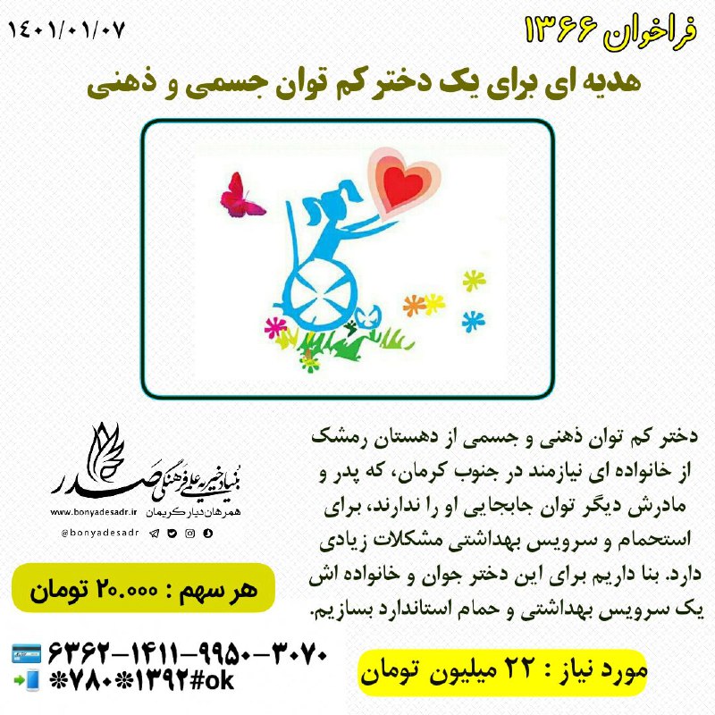 #فراخوان ۱۳۶۶ ۷ فروردین ۱۴۰۱ هدیه ای برای دختر کم توان جسمی و ذهنی سخته تو یه منطقه محروم باشی و از اولین امک…